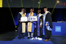 L’Université de Montréal a également profité de l’événement pour décerner un doctorat honoris causa à Pierre Karl Péladeau (LL. B. 1987), soulignant ainsi sa contribution importante à la société.