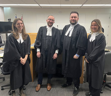 Lors de l’audience du 8 décembre, huit étudiantes et étudiants de la Faculté de droit ont plaidé devant la juge Marie-Julie Croteau de la Cour du Québec, soit Frédéric Bergeron, Tiziana Burmester Quevedo, Delphine Dextrase, Omar Hafez, Sandrine Lafleur, Vincent Lebel, Audrey-Ann Reimnitz-Hubert et Thomas Rhéaume, sous la supervision de leur enseignant, Me Vincent Ranger.
