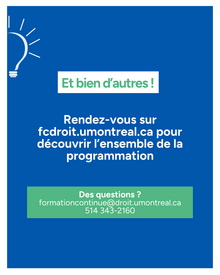 En mars, la Formation continue de la Faculté de droit de l’Université de Montréal vous propose plusieurs conférences consacrées notamment à l’éthique et au droit, au régime de responsabilité de l’IA à travers le spectre de l’assurabilité, ainsi qu’à la protection du public contre la fraude immobilière et au rôle clé joué par l’OACIQ.