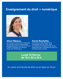 En février, la Formation continue vous invite à deux conférences portant sur des enjeux actuels du droit, de la réhumanisation de l’institution judiciaire à l’enseignement du droit numérique.
