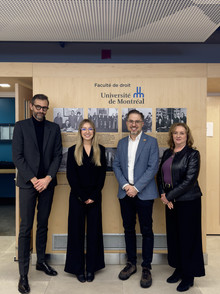 Me Bruno Larivière, président de la Chambre des notaires du Québec, Nathalie Bélanger, responsable du programme de maîtrise en droit notarial, ainsi que Jérémie Torres-Ceyte, vice-doyen aux études de premier cycle et titulaire de la Chaire du notariat, ont tenu à féliciter la récipiendaire et à souligner cette reconnaissance bien méritée pour son engagement et la qualité de son travail.